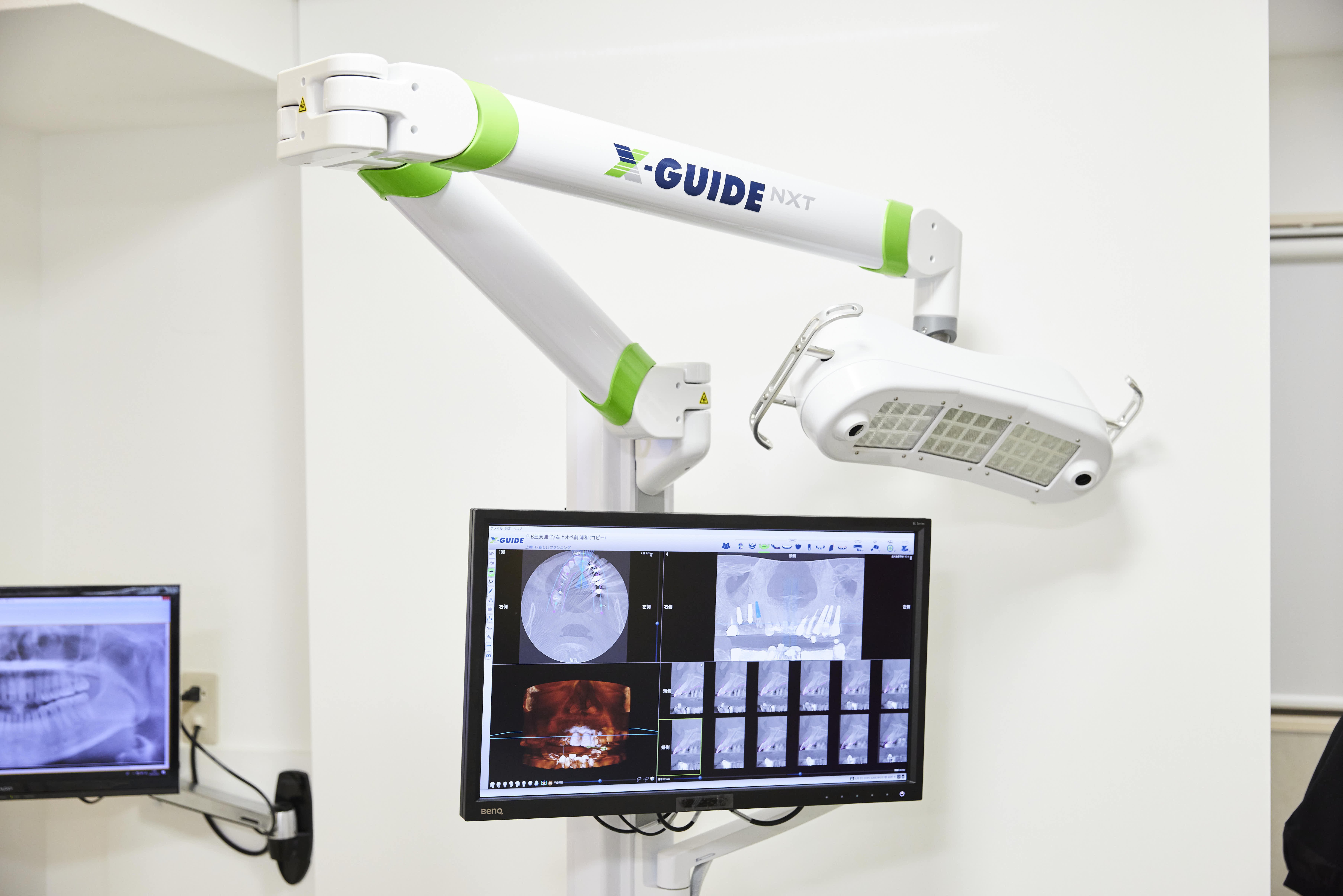 インプラント治療の手術計画をもとに、埋入位置や角度を確認しながら処置を進めるためのナビゲーションシステムです。CTデータと治療計画を活用し、手術中にモニター上で位置関係を確認できるため、治療計画との整合性を確認しながら進めることが可能とされています。