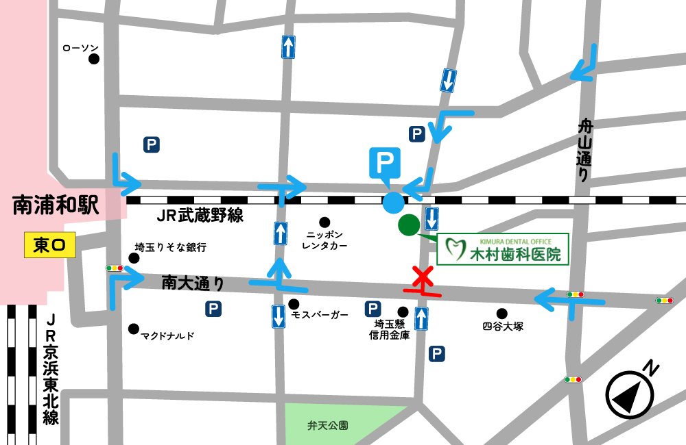 木村歯科医院はさいたま市南浦和に位置し、地域の皆さまが通いやすい立地にあります。