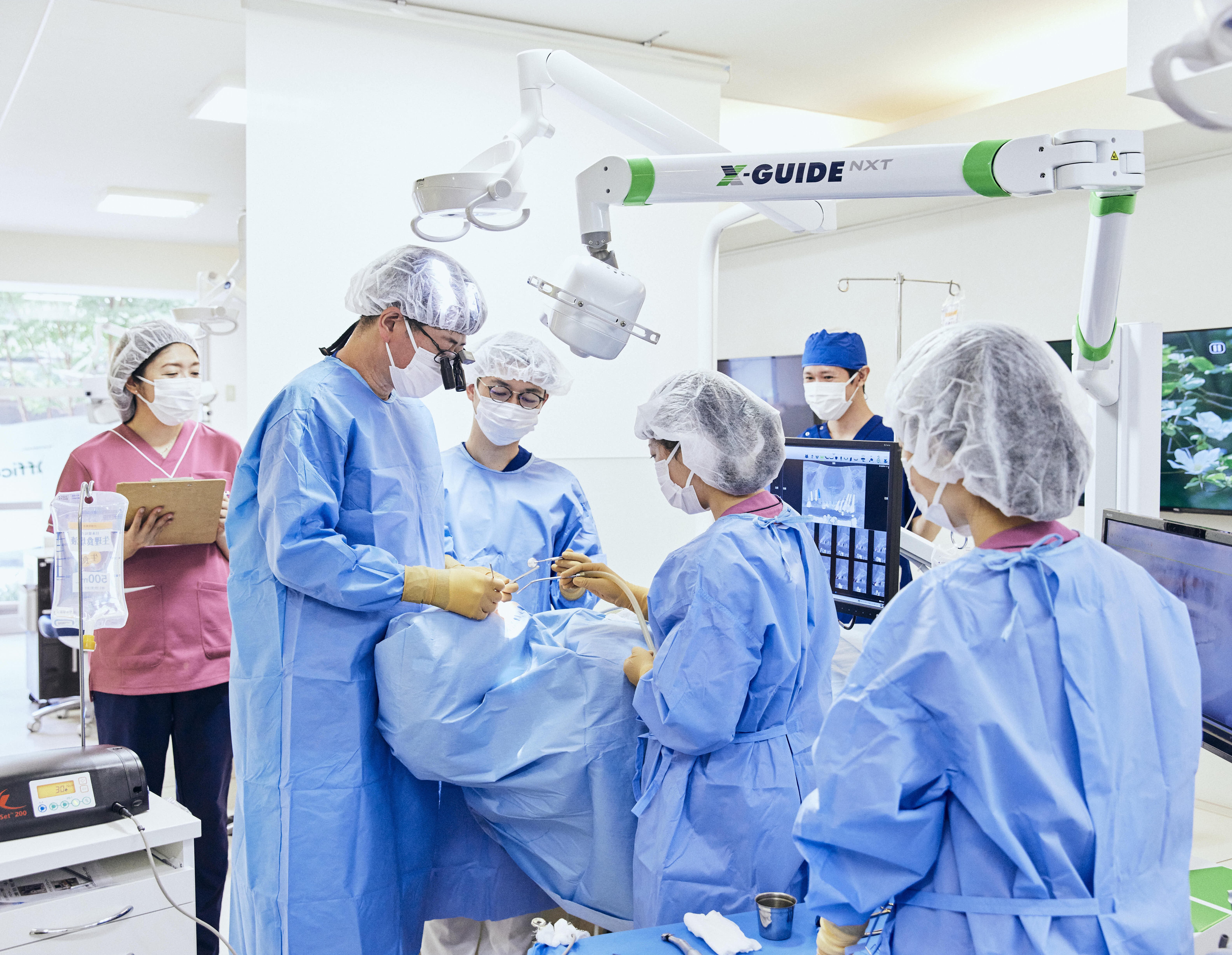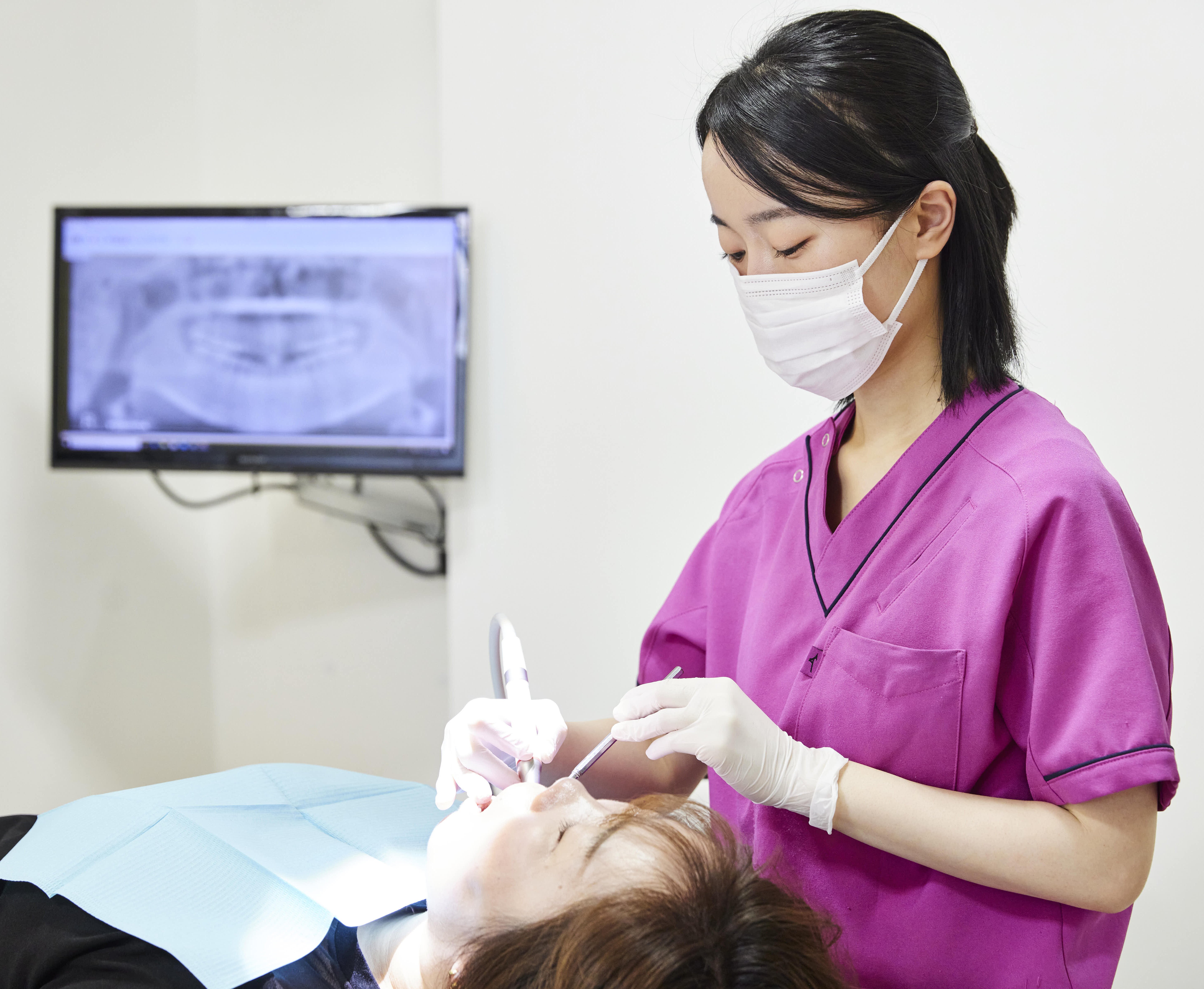 手術前に歯科衛生士による口腔内の清掃やケアを行い、お口の中をできるだけ清潔な状態に整えます。 歯周病や炎症が見られる場合には、事前に処置を行うこともあります。 治療を円滑に進めるための準備段階です。