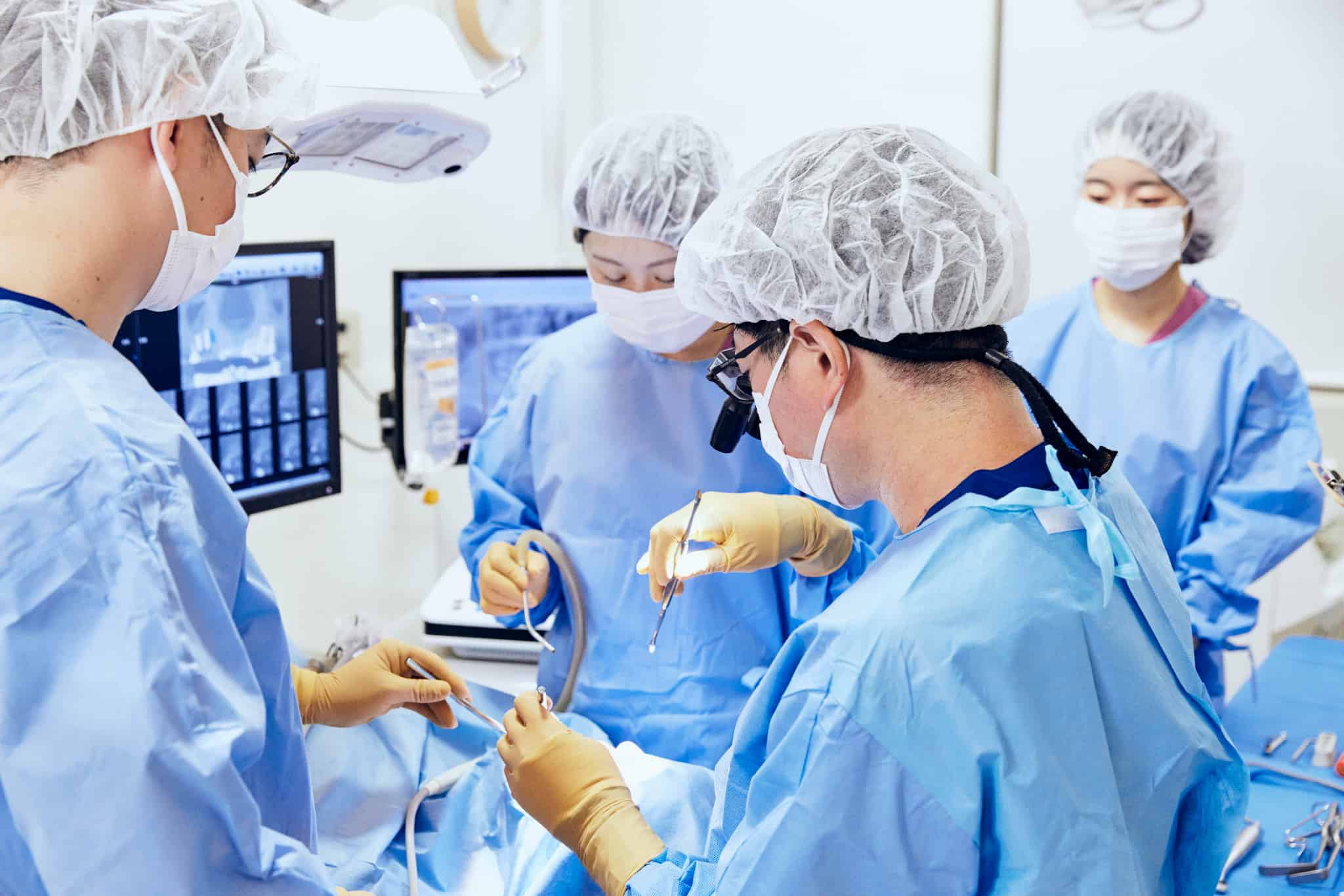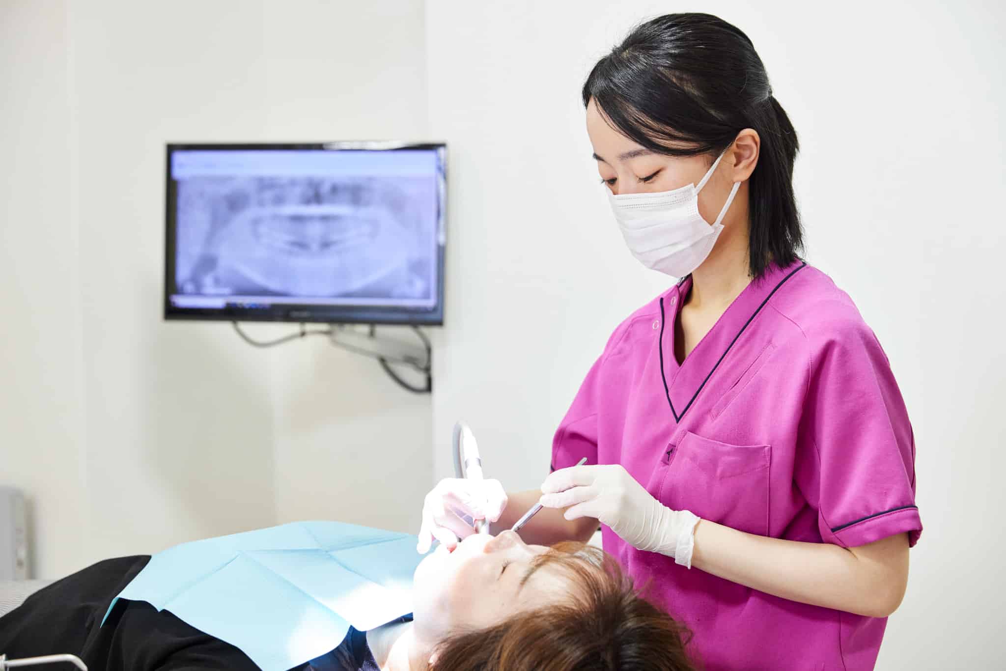 手術前に歯科衛生士による口腔内の清掃やケアを行い、お口の中をできるだけ清潔な状態に整えます。 歯周病や炎症が見られる場合には、事前に処置を行うこともあります。 治療を円滑に進めるための準備段階です。