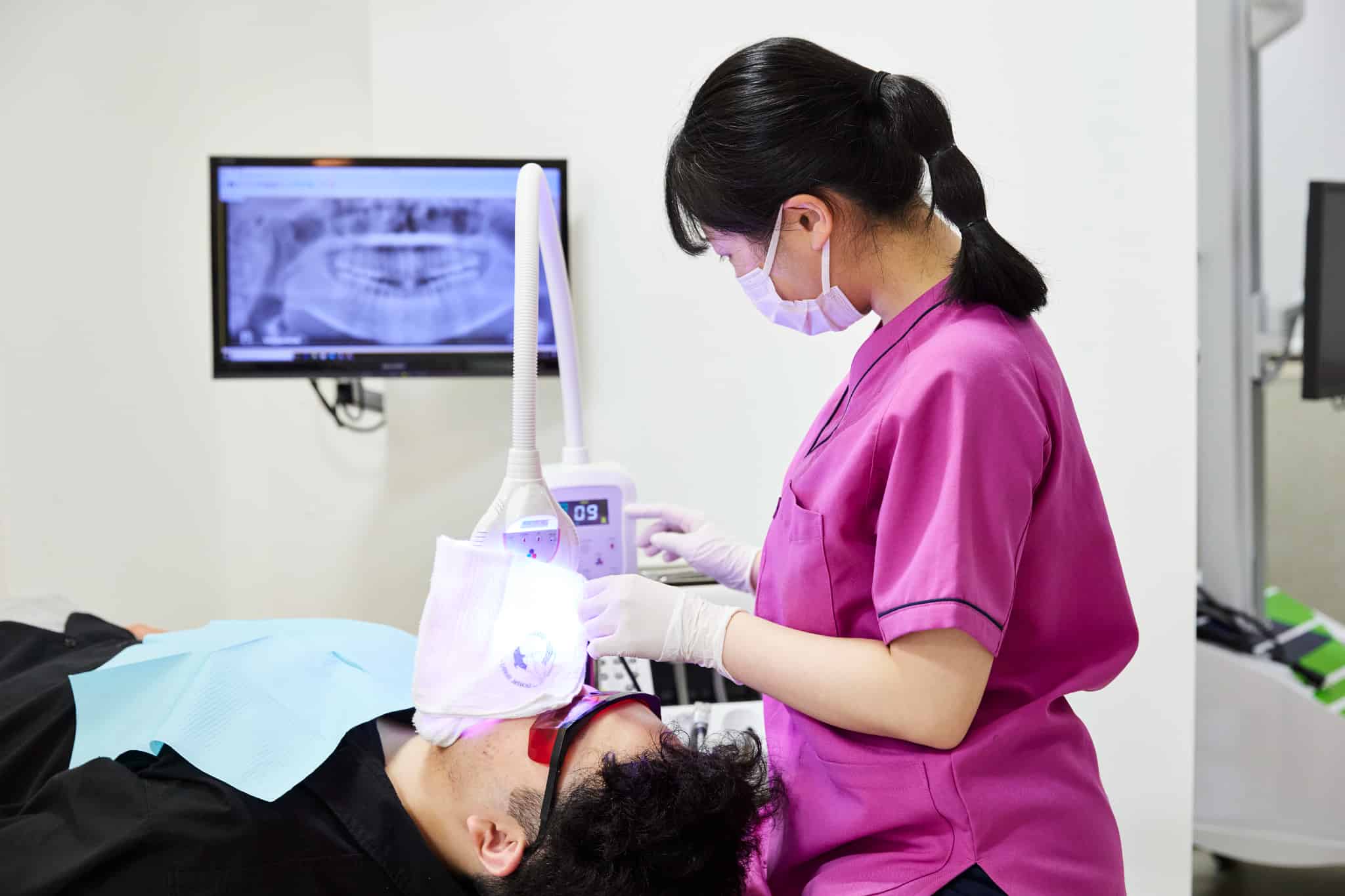 手術前に歯科衛生士によるプロフェッショナルケアを行い、お口の中を清潔に整えます。不潔な状態では術後の感染リスクが高まるため、必要に応じて歯周病の治療などを先行させる場合もあります。